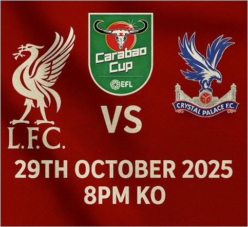 Return Coach tickets for the Carabao Cup fixture vs Crystal Palace on Wednesday 29th October 19:45pm kick off